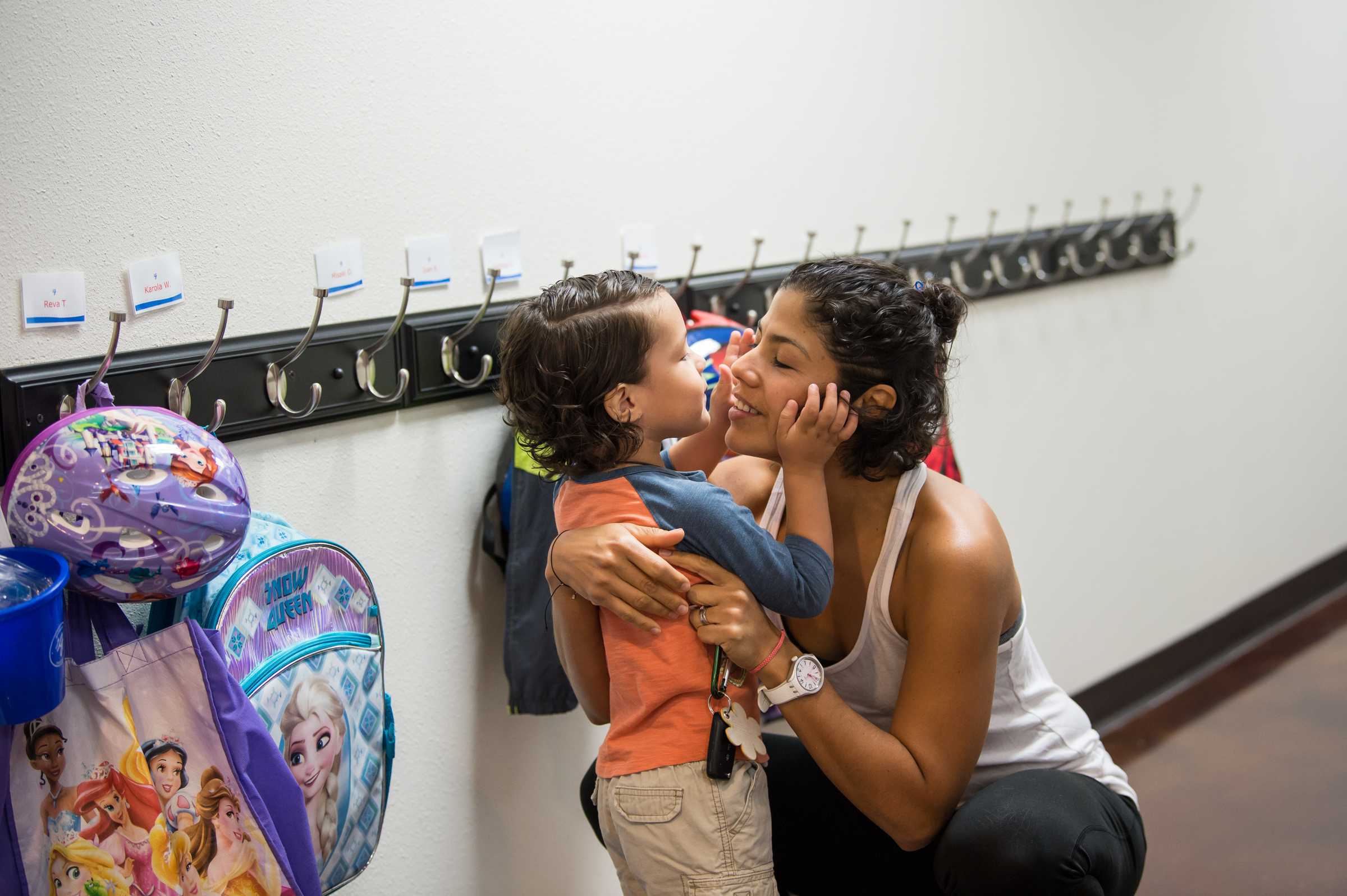 Unrushed drop-offs are less stressful for you and your child, of course, but also provide a meaningful opportunity for your child to build independence. Once your child is able to walk, for example, you can allow them to walk into campus without being carried, and once they’re confident with walking independently, they can carry their own belongings, and eventually work to take off their own coats and hang them up once inside.