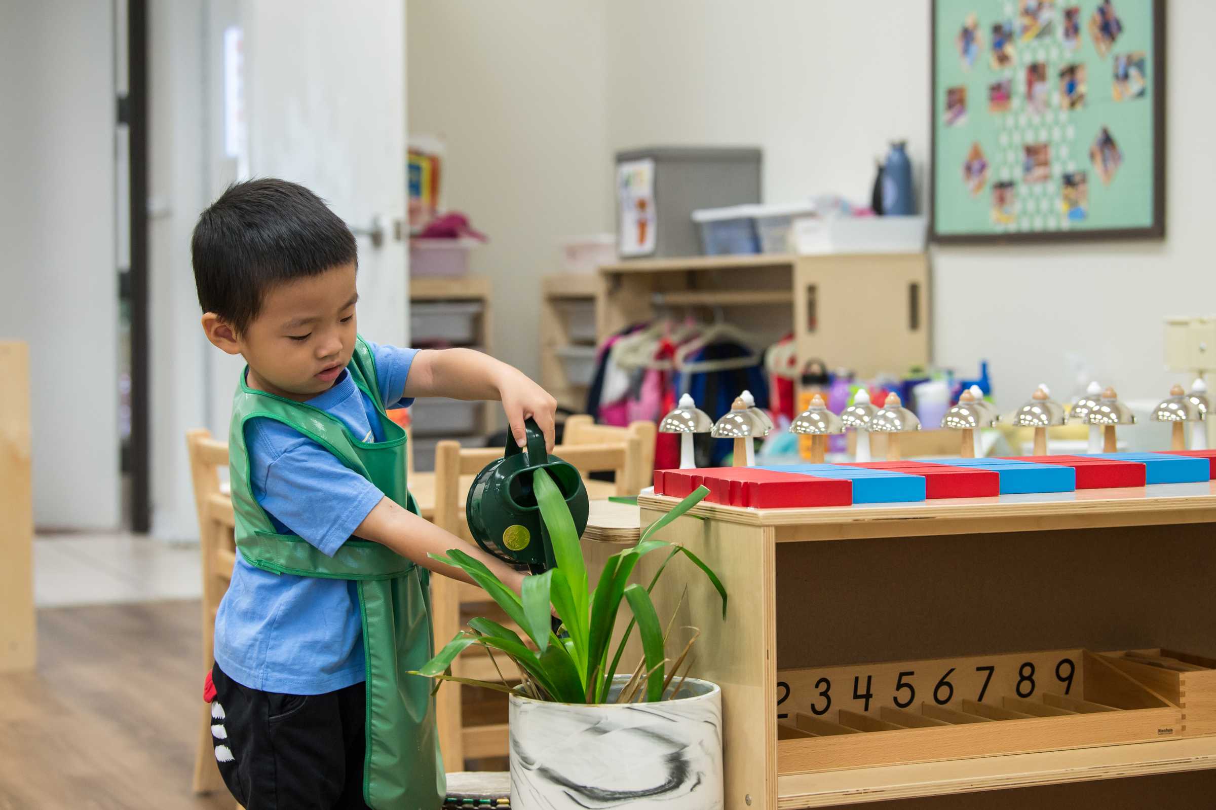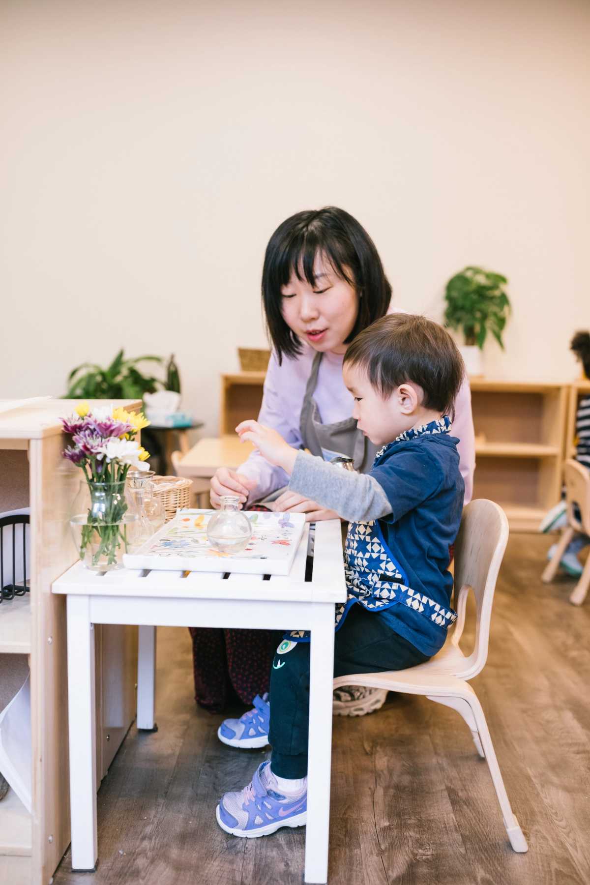 The Montessori Toddler Community is a place where your child can acquire rich vocabulary and communication skills, practice both fine and gross motor movement, and master toilet learning. Your toddler will also learn how to work well alongside other children, express his needs and wants kindly, practice sustaining focus during various activities, and manage those big toddler emotions! Specific age ranges in the Toddler community vary by campus, but the classroom is typically suitable for children ages 16-36 months. In some jurisdictions, regulations require that our Toddler Communities be split by age, for example into Young Toddler (e.g. ages 12-24 months) and Older Toddler (24-36 months). The best age to transition from Nido varies by child; children are ready for the Toddler Community when they are alert and active throughout the morning and can walk steadily while holding learning materials in two hands.